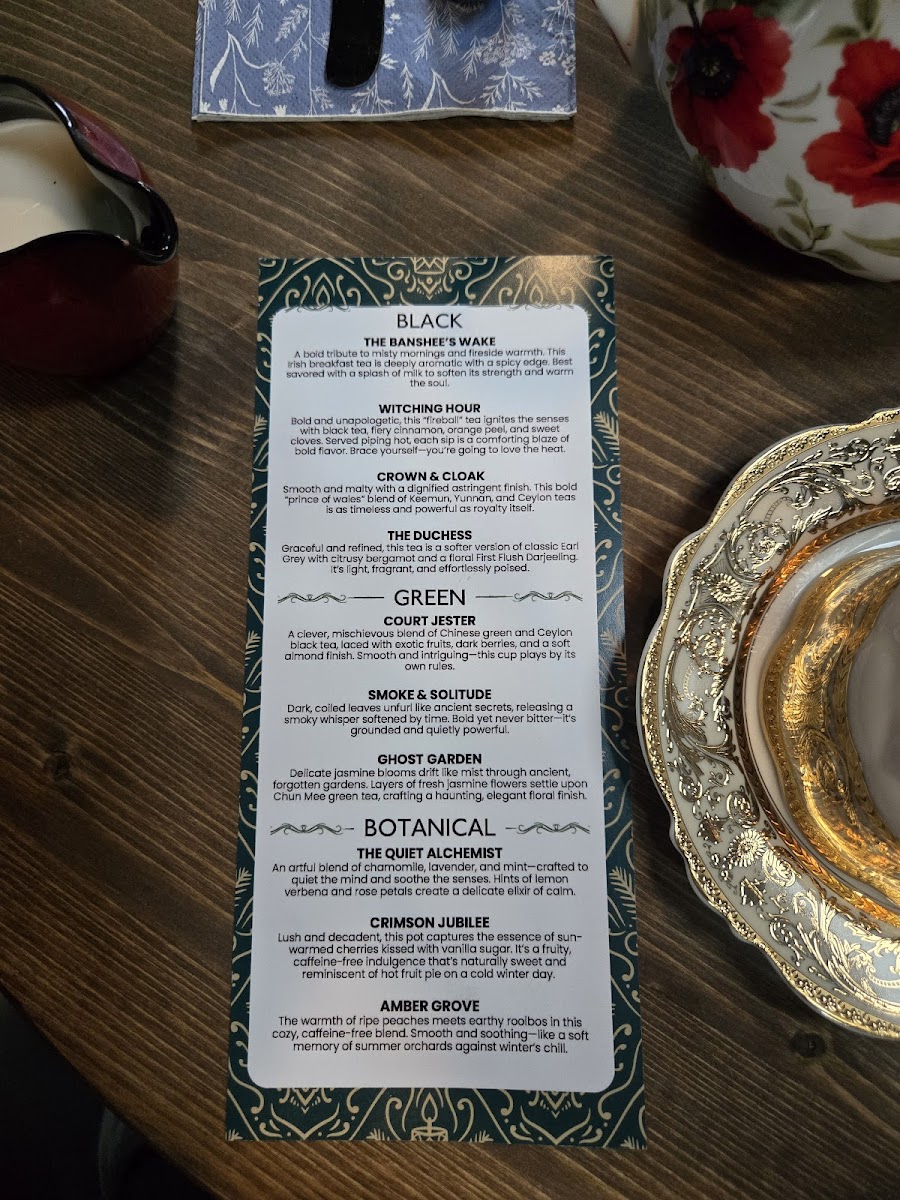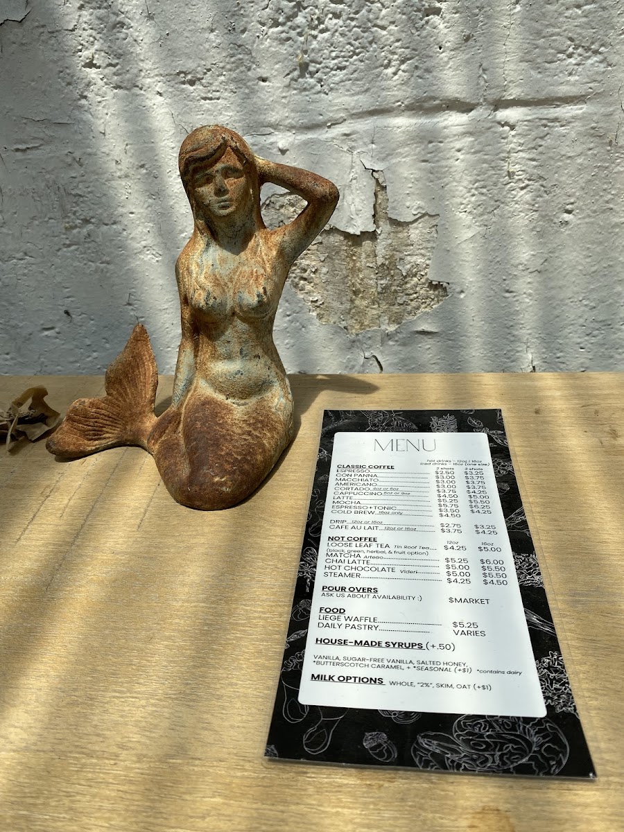 Alongside the drinks, simple yet satisfying food items like Liege waffles and pumpkin bread complement the cozy, inviting atmosphere of the café. Many visitors enjoy these treats in moments of quiet reflection or casual conversation, with seating available both indoors and out to suit the mood. The menu also includes a selection of distinctive teas—ranging from botanical blends like The Quiet Alchemist to fruit and herbal options such as Peachy Green Rooibos—that add a unique, slightly whimsical touch to the experience.